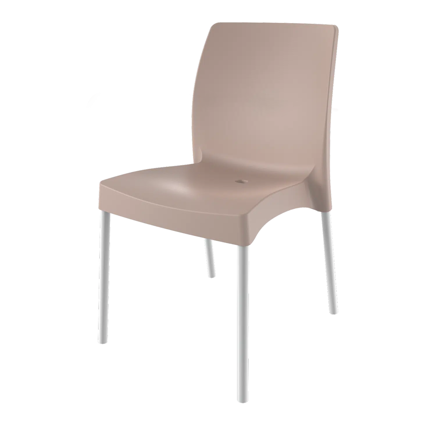 Elegantna bistro varijanta stolice Iris sa aluminijumskim nogama. Idealna za kafiće i restorane koji žele moderan izgled uz praktičnost.